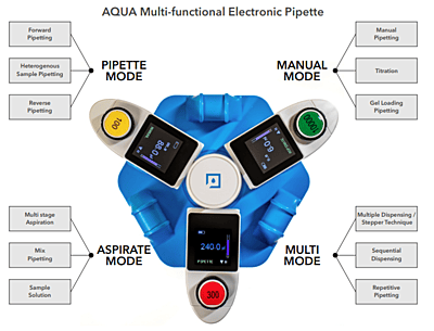 Microlit AQUA is a multi-functional electronic volumetric pipette designed to measure and transfer liquids precisely and safely. It can measure and transfer volumes from 0.1 µL to 10000 µL depending on various models. These are available in Single Channel and Multichannel (8-channel and 12-channel) variants. Electronic micropipettes are exceptionally compact and lightweight due to a knock-down (detachable) rechargeable battery and have multiple pipetting modes to enable efficient lab work. They ensure reliable, accurate and repeatable experiment results and protect the user from repetitive strain injury (RSI).