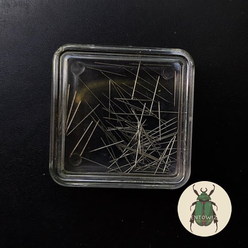 Minuten insect pins are thin, headless pins used for mounting small insects. They are typically made of stainless steel and come in a variety of lengths and diameters. entoWIZ Minuten pins are ideal for mounting delicate insects, such as microlepidoptera (small moths) or similar sized insects with soft bodies like sandflies, mosquitoes, etc.