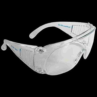 Lens Type: Zero-power / Clear hard-coated lens with side shield indirect ventilated temple Lens Material: Polycarbonate Temple / Color: Transparent Frame Material: PolypropyleneLens Color: Clear Transparent 0 UV protection: 99% Optical-class lens Operating Temperature: 90-100 DEGREE Country of Origin: Made in Taiwan Impact-resistant: For medium and low levels of impact against flying objects and particles